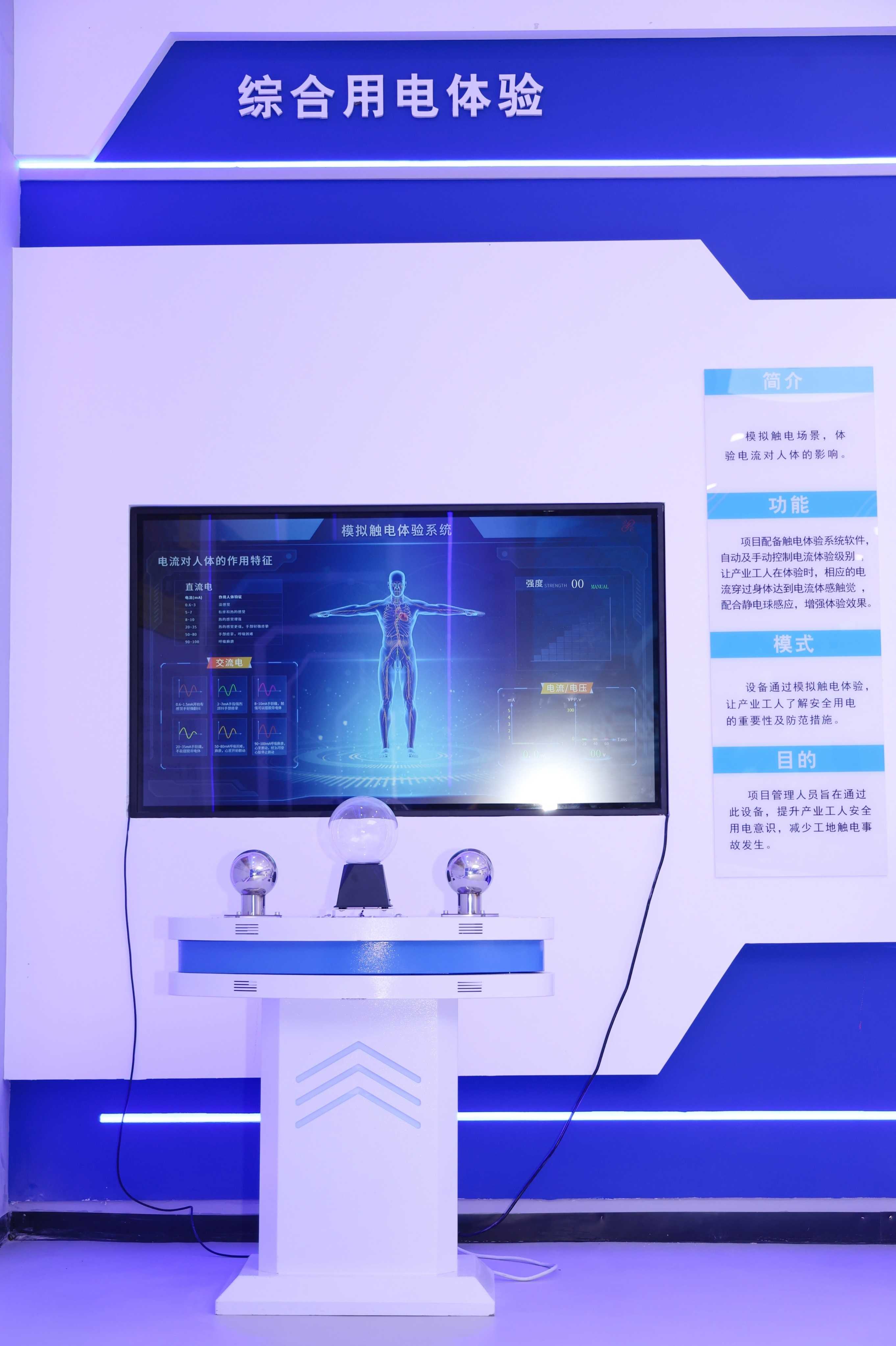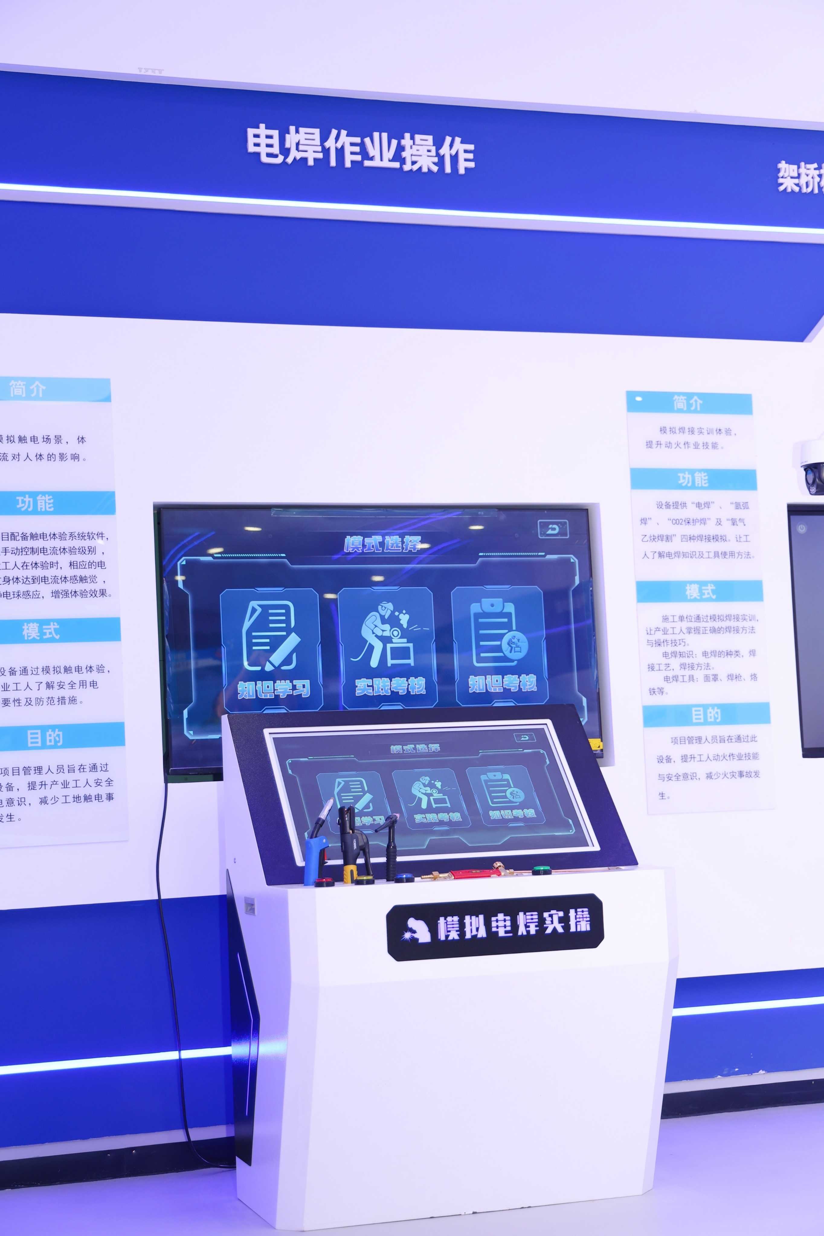 走進智慧館,兼具科技感與實用性的場景令人印象深刻:線上管理平臺實時滾動著工人培訓記錄,線下移動終端可在施工現(xiàn)場隨時開展“微課堂”;在VR虛擬體驗區(qū),工人戴上設(shè)備就能“親歷”高空墜落、機械碰撞等高危場景,在痛感與震感中強化安全意識;在綜合用電體驗區(qū),真實電流通過模擬裝置產(chǎn)生的酥麻感,讓安全用電從理論變成了切身體會。